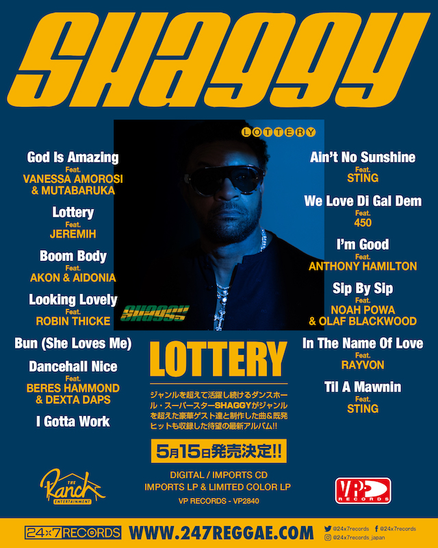 【VP RECORDS】 SHAGGY最新アルバム『LOTTERY』5月15日発売決定。ジャンルを超えた豪華ゲストを迎えた全13曲。配信・輸入盤CD・輸入盤LP(通常盤 & 限定カラー盤)でリリース