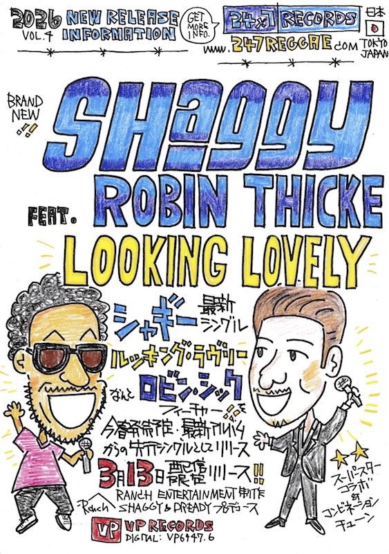 「Dancehall Nice」にはBERES HAMMOND&DEXTA DAPS、その前シングル「Boom Body」にはAKONとAIDONIA、「Til A Mawnin」にはSTINGとダンスホールを代表する世界的スターとして長年に渡り幅広く活躍するSHAGGYらしくジャンルを超えた豪華アーティスト達を迎えたリリースを続けている中で最新曲となる「Looking Lovely」にもROBIN THICKEをフィーチャー。
