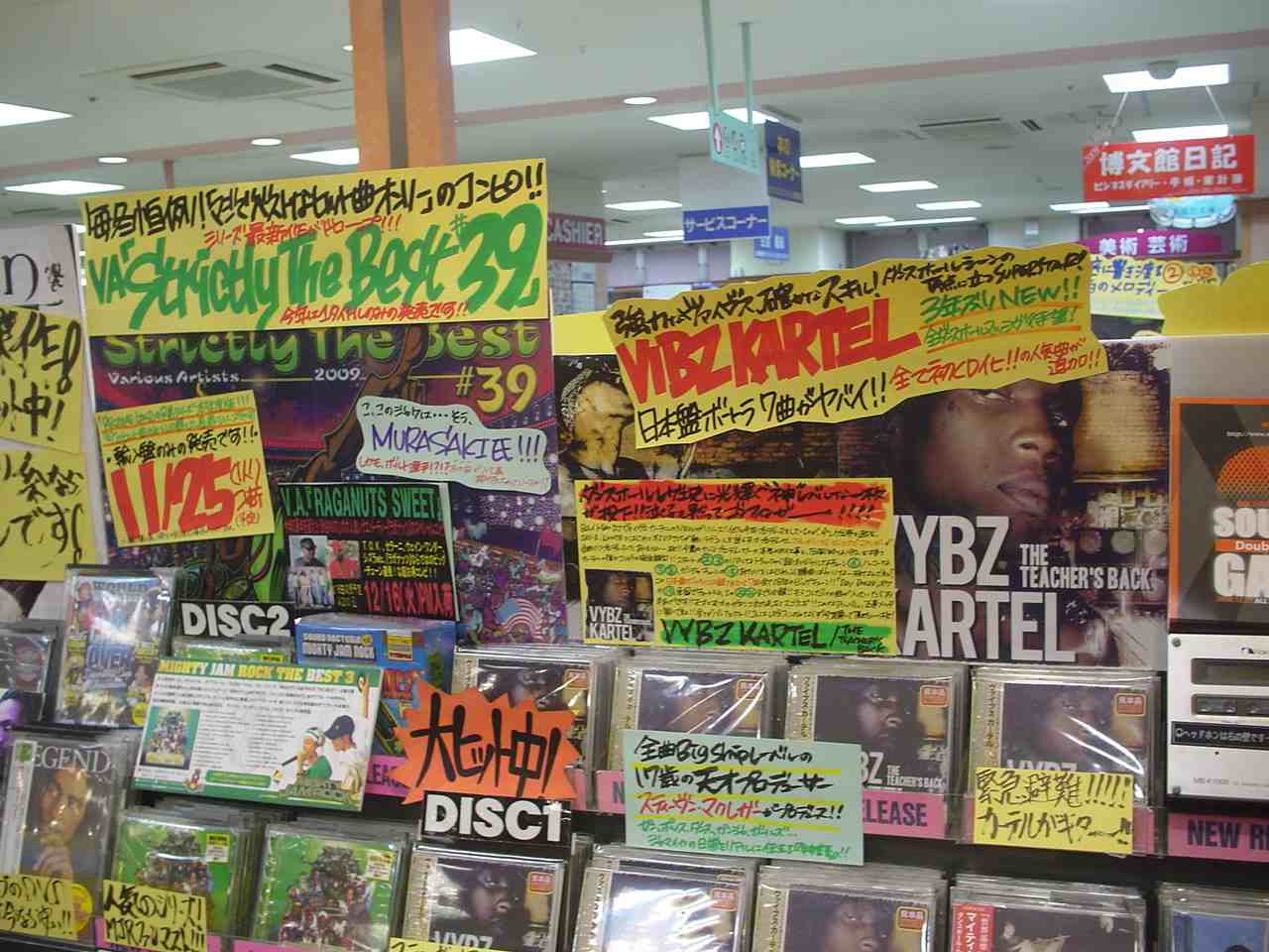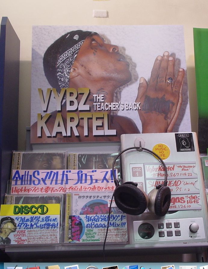 レゲエ・コーナーに行ったら、ヴァイブス・カーテルの『THE TEACHER'S BACK』が店内演奏されてて、「おーっ」と。そんで、試聴機とかでもドーンと展開しててさらに「おーっ!」。さらに、そこでプリティ・ギャルが試聴してたから、またまた「おーっ!!」。見たかった景色が全部揃ってた。
