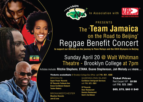 そんで、その北京オリンピックに参加するジャマイカ・チームをサポートすることを目的としたチャリティ・イヴェントが、今週末にニューヨークで開催されます。よく分かりませんけど、オリンピックに参加するのにも色々と経費は掛かるようで、決してお金持ちではないジャマイカですので、それをこうしたチャリティを通じて賄っていこう、といったところみたい。