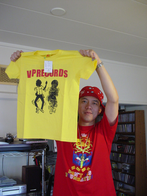 で、サミー・Tと言えば、横浜中華街のショップ、ラガ・チャイナをファイヤー・ボールのジュン・4・ショットと共に運営しているお方。で、ウチのサイトで展開している「VPオフィシャル・グッズ販売」で、来週月曜日から発売となるVP新作Tシャツが、ラガ・チャイナさんでも発売してもらうことになっていて、サミー・Tにも事務所でブツを見てもらった感じ。写真の通り、「イエーイ、良いネ」ってな感じ。アリガト。