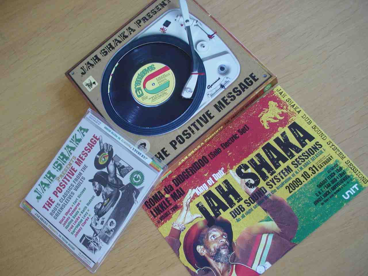 まず、グリーンスリーヴスからリリースした『THE POSITIVE MESSAGE』も好調なジャー・シャカさんが無事に来日したそう。多分、ダブ・プレートをテンコ盛りで来ているハズ。明日は東京のUNITで公演実施。行ける人は是非。