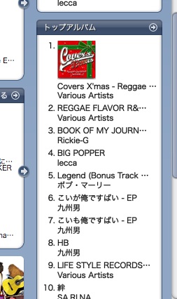 で、次々とメールをやっつけてたら、「ん?」と。いつものビクターさんのA&Rさんからのメールに「i-tune storeでも1位になってましたね」と書いてあって、「何のコト?」と思ってたら、来週にCDで再発リリース頂くウチの『COVERS X'MAS』が「i-tune store」のレゲエのアルバム・チャートで昨日に1位になってたコトが判明。ほー。