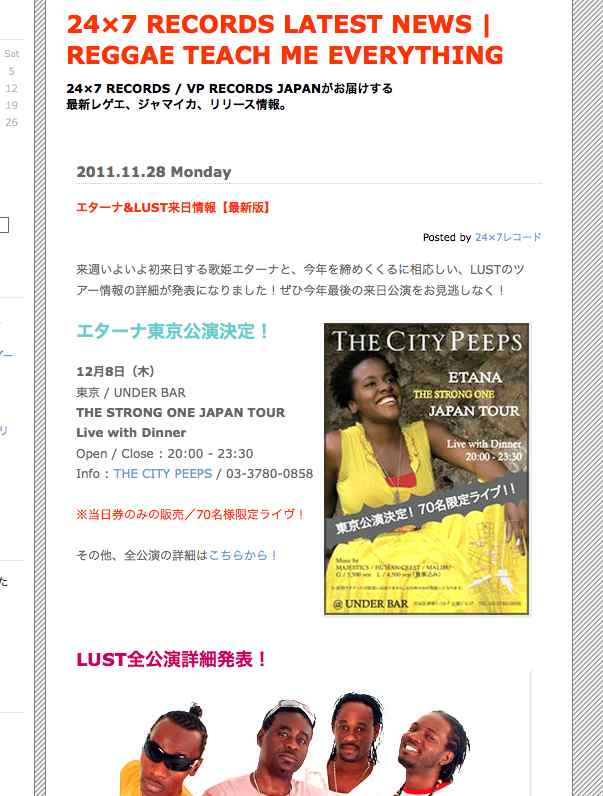 あと、週末に先週に告知した「カレンダー」についてお問い合わせを頂きましたが、今回のカレンダーはレゲエ・ザイオンさんだけでの取り扱いとなります。弊社サイトよりの通販は予定しておりません。何卒ご理解・ご了承願います。ゴホっ。