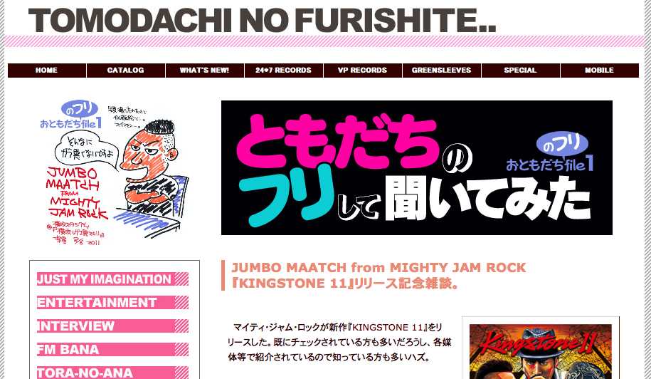 | 色々なメモリーズ。 | ![]() 火曜日。 祝日明け。今週もヨロシクです。 で、台風接近で急に「涼しー」。それより地元名古屋マッシヴを心配。どうかタイトに。無事祈願。 連休はメモリーが色々。 土曜日は休日出勤。終日事務所で決算用の経理作業。久々に集中力発揮。と言うか、「嫌いな仕事はとっとと終わらせよー」。一人だと「やりたくにゃー」とグズグズと愚痴る相手もいないので「やるしかにゃー」。やってしまえば「楽勝ーっ」。三連休全部をコレで潰すかと思ったけど、夜にはほぼ終了。エナジーが余ったので、発送作業とかもやっつけておいた。 発送作業のブツはI・ウェインの新作『LIFE TEACHINGS』のサンプル盤。US現地10月11日発売予定だけど、日本向けの商品出荷は今週金曜日ってことで「早め、早め」にやっとくべし。焦らず急ぐ。日本では10月頭ぐらいには各店に入荷予定。「世界先行」とか言っとく。是非ヨロシク〜。 I-WAYNE / LIFE TEACHINGS 弊社サイト / VP RECORDS NEW RELEASE 10月欄内 http://www.247reggae.com/vp/release/1110.html#vp02 日曜日は午後から出動。最初はJ-WAVEに。4ヶ月振りに『TOKIO HOT 100』。「こだわり持ち込みレコメン」のコーナーに出演。前回がなんかダメだったので、「明るく、元気にいこ」。レコメンしたのはJ・ブーグ&ピーター・モーガンの「Sunshine Girl」。天気も良かったし、なんかJ-WAVE向きな曲にも思えたから。今回も生放送の空気に「うげー」と嫌な汗たっぷりだったけど、まっ、頑張ってはみた。自分では聞けないので、よく分かんない。 で、「J-WAVEでJ・ブーグって、『J』が掛かっているんですね」と知らん人から放送直後に連絡もらったけど、「ああ、言われてみれば」。気付きませんでした。でも、わざわざ有り難う。で、レコメンした「Sunshine Girl」も、ビッグ・ヒットの「Let's Do It Again」も収録されたJ・ブーグの最新作『BACKYARD BOOGIE』はUS現地で本日20日発売。先週にはサンフランシスコとかでリリース・パーティーとかやってた。地元ハワイでもやる予定とか。あと、日本への出荷も順次開始予定みたいなので見つけたら是非〜。 J-BOOG / BACKYARD BOOGIE 弊社サイト / CATALOG / OTHERS欄内 http://www.247reggae.com/catalog/others/index.html で、六本木ヒルズを出て、テクテクと渋谷方面に。渋谷と原宿の間にオープンしたA1ストアをパス・スルー。ちょうど前日にオープンしたばかり。マスターピースの吉崎さんも店頭に居て「こんにちは」。今まではサイトだったけど、ついにリアル店舗オープンで「おめでとうございます」。Tシャツ/ウエア/スニーカー等、ナイスな品揃え。ウチの「RICE & PEAS」のTシャツも販売頂いてるので、近くに行ったらチェックしてみて。今週末には真横に別コンセプトの店舗、A1・クロージングも開店なので是非〜。 A-1 STORE / BLOG http://a-1store.jp/blog/a1store/ さらにテクテクと渋谷ファイヤー通りに。DJムロさんのお店のDIGOTの前にはムロさんがチルってて「こんにちは」。ウチで作らせてもらった「MURO & SASSAFRASS」のTシャツの話をしたりなんなり。こちらは先にリアル店舗オープンで、先日にサイトがスタートしたばかり。サイトで通販も始めているので是非チェックを〜。 DIGOT / MURO & SASSAFRASS T-SHIRTS http://www.digot.jp/contents/future/tshirs_sassafrass.php さらにDIGOTの並びのビルにあるレコード店のココ・アイルさんもパス・スルー。J-WAVEでJ・ブーグを流してきたばっかだったのもあって、店主の中村さんと「こんにちは」してから、色々とハワイのレゲエ話をしたりでアハハ。まっ、自分の中での「ハワイのレゲエの謎」を色々と教えて頂いた感じ。日本ではまだまだ情報不足のハワイ・レゲエのコトを聞くならココはお勧め。フレンドリーに教えてくれる中村さんに聞いてみるべし。自分も「ハワイのパンド」と思ってたいのが、「いえいえ、彼らはヴァージン諸島っす」と教えてもらったりしました。感謝。 COCO-ISLE http://www.coco-isle.com/ で、さらにその裏通りのディクショナリー・クラブで実施していた『フリマガ』さんのパーティーにも参加。4周年記念。『フリマガ』はそのまんまフリー・マガジン。ジャマイカ拠点のオカマイ女史とかが発行人。ちょうど最新の14号が出たばかり。レゲエ関係者だと今号ではジギー・マーリー、マイティ・ジャム・ロックのタカフィンとか出てる。タワーレコードとかで配布しているハズ。 FREMAGA http://fremaga.net/ まっ、このパーティーに合わせて帰国したオカマイとリンクしに行ったんだけど、オカマイはパーティーの主催者でもあるので大忙しで「よー」「おー」だけで終了。他にも大勢のゲスト集結だったけど、知らない人多数で「うーむ」。人見知りなので、こうした「パーティー」とかは苦手。じーっと定位置で棒立ち。 で、横見たらストーン・ロッカーズのヨータ君が棒立ちしてたので「こんにちは」。日頃は挨拶ぐらいしかできてなかったので、「ともだちのフリして」色々と聞いてみた。レゲエを演奏する人の話を聞いてみたかった。で、ヨータ君