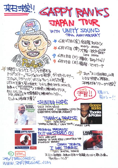 | なんやかんや。 | ![]() モクモク木曜日。 『HI GRADE GANJA ANTHEMS VOL.4』も是非。 新旧モクモク・チューン18曲収録のCDは絶賛モクモク発売中。配信もモクモク開始中。スヌープ、カリバッズ、アルボロージ、カッチャファイヤ、ジャー・メロディ、I・オクテン、ビジー・シグナル、シュガー・マイノット他、世界各地のモクモク野郎達のモクモクなガンジャ賛歌を厳選モクモク収録。 で、10曲入りのLPは今月末に登場。ピクチャー・ディスク。限定生産。カラーは「みどり」。「グリーンスリーヴス」とも掛けています。どーかヨロシク。 『HI GRADE GANJA ANTHEMS VOL.4』 http://www.247reggae.com/vp/release/1404.html#vp02 えー、「ご報告」と「御礼」を。 昨日で「REGGAE TEACH ME EVERYTHING」「RAGGA RAGGA RAGGA!発売記念」「ジャマイカ政府観光局コラボ『ジャマイカに行こうじゃまいか!』の各Tシャツ&グッズの先行予約の受付を締切らせて頂きました。 で、数多くの皆さんからご予約頂いて大感謝。心から「ありがとうございます」。現在生産中で、月末の発送&正式発売を予定&準備していますけど、ガッチリとお届けできるように頑張ります。あと、今回の先行予約&店頭販売分で生産予定枚数に達してしまったモノ(サイズ)もあったりしますが、今後に追加できるのかどうかも確認&調整します。えー、引き続きヨロシクお願いします。 で、皆さんからの予約も「嬉しいじゃまいか」だったんですけど、何て言うか、自分達なりに提案させて頂いたモノとか企画を受け入れてくれるコトがたまらなく「嬉しいんだ」だったんですけど、他にも「嬉しいじゃまいか」なコトもありました。 ええ、ギャッピー・ランクスが来月に来日するコトはお伝えしてますけど、その来日に向けて昨日に「なんか告知できる画像とか欲しいな」と思っていたんですけど、自分ではイラストレーターやらフォトショップとかは「ポカーン」ですし、それが得意なマイ・クルーはTシャツのお問い合わせとかでドタバタしてましたし、「じゃーまーいーかー、自分で作ろうじゃまいか」とまたいつものように手描きしたんです。クズな画を。コピー用紙に。色鉛筆とかマジックで。いつも通りに。 まっ、「とりあえず情報をお伝えするコトが先決」で、「何も告知素材がないのならそうでもするしかないじゃまいか」と描いたんですけど、それをFBとかtwitterで公開したら、なーんとそれをギャッピー・ランクス本人が発見。で、なーんとすぐにそのまま自分の顔の部分を無理矢理トリミングして自分のtwitterのアイコンとかに使用してて、「おっー、コレは本人が気に入ったってコトなんじゃまいか!」。 さらに、朝にはギャッピー・ランクスを招聘するユニティー・サウンドのクロス先生からなーんと「ギャッピーがあのイラストの画像をもっと高画質で欲しがっているんだけど、送ってくれないかな?」と連絡有で、「おーっ、コレはマジで本人お気に入りじゃまいか!」とウシシ。 まっ、こういう反応も嬉しいとこ。ホントに。いつも「似てるとか、似てないじゃないのさ、そーゆーことではないのさ」と開き直ったフリしたり、なんか特別な意味があるフリしていますけど、「コレは酷いだろ・・、似てないにもほどがあるし、悪意とも受け取られるだろ・・」と若干罪悪感もあっただけに、喜んでくれる、受けてくれる、反応してくれるのは嬉しいとこ。ホントに。今回は本人だったし、海外だし、余計に。 ああ、で、不思議なコトに、さらに昨晩は「あのイラストのタッチがいいと思うから、なんかアレでアレしませんか?」とも連絡有。日本で。国内で。「仕事につなげませんか?」って。ビックラ。「ホントっすか?」なとこ。でも、それも嬉しいとこ。今回のに限らず、ずーっと黙って見ていてくれたコト、その上でそうした連絡をしてくれたコトが「たまんねぇな」。 まっ、全員が全員同じアレでは全くないコトはとっくに知ってますし、全員を満足させるものも提案・提示・企画できるとも全く思ってもないですけど、それゆえに音源とかもですけど、こうしたTシャツとか、こうしたくだらない画とかもですけど、なんか少しでも何か反応頂くと、スゴく嬉しいというか、肯定できるというか、安心すると言うか、自信ってほどではないですけど、なんか少し上とか前を向けると言うか、なんか「いいね!」なんです。その分、気持ちも締まりますけど、それも「いいね!」と。なんか「たまんねぇな」なんです。 えー、全ての皆さん、仲間達に感謝。受け止めて、受け入れて、許してくれて、アリガト。人が、相手が存在して成り立っています。自分やウチを立たせてくれています。結局、仕事に限らず、全てがそうですけど、そうした存在を確認できるコトに何かを確認もしている気がしています。ええ、なんか大切なものを、自分や自分達にとって。 もっと頑張ります。 もう少し続けます。 そんな感じ。ではでは。 |