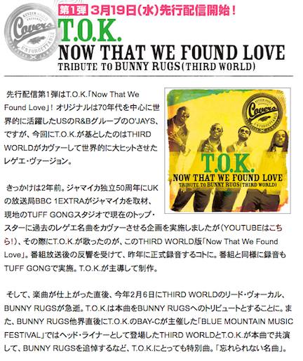 | 『なんやかんや』と『募集』。 | ![]() ウシシ。 昨日から今朝にかけて色々と到着。嬉しい案件・連絡多数〜。 サクサクいきましょ。 その1ー。T.O.K.「Now That We Found Love」のオフィシャル・ビデオが到着。『COVERS』新作からの第1弾の曲。REGGAE ZIONでの独占先行配信開始中の曲。OJsがオリジナルだけど、サード・ワールド版を基としたカヴァー曲。サード・ワールドのバニー・ラグスへのトリビュート曲。 T.O.K. / Now That We Found Love OFFICIAL VIDEO http://youtu.be/HtmDXJcSYiE T.O.K. / Now That We Found Love 曲紹介 http://www.247reggae.com/247/news/1403.html#tok で、見ての通り、ビデオでもバニー・ラグスへのトリビュートが全開。バニー・ラグスの歌唱シーンもきっと無断使用。それにT.O.K.が歌っているところが合体した内容となっているんですけど、T.O.K.とサード・ワールドの共演映像が大半。 コレはバニー・ラグス他界直後に開催された「BLUE MOUNTAIN MUSIC FESTIVAL」でのライヴ&リハーサル映像。同フェスはT.O.K.のベイ・Cが主催者で、サード・ワールドも出演。そこで両グループがバニー・ラグスへのトリビュートとして同曲を共演した感じ。サード・ワールドでバニー・ラグスの後を務めているのはA.J.ブラウン。サポート・メンバーとして。 改めて理解頂きたいのは、そうした背景・事実・物語が存在している特別曲というコト。あと、『COVERS』シリーズがジャマイカ発信で、これまでも世界で支持されているのは、そうしたアレが色々と存在しているから。実際に各アーティストがライヴで歌ったりとかも。企画モノだけどリアル。 その2ー。きっと朗報でしょ。今朝に〈JUKE BOXX〉のシェーン・ブラウンから連絡有。自身がマネージャーを務めて、新作にもエンジニアとして参加しているトーラス・ライリー新作『LOVE SITUATION』のコトで連絡有。いきなり「アナログを作るコトにしたよ」。「えっ!」。 ええ、LPとしてもリリースするらしいです。既に生産に取り掛かっていて、USでプレスしていて、近日中にUSから配給するとのコト。朗報でしょ? で、「それはとっても嬉しい」と伝えつつ、「7インチもカットしてよ」と言ったら、「需要ある? LPリリースしても7インチって必要?」と言うので、「必要」とピシャリ。断言。「わかった、検討するよ」とのコト。「是非」と言いましたけど、チト後から不安にも。でも、7インチもあった方がいいよね? 自分だけ? 意見募集。 その3ー。ジャマイカ在住で現地で宿を経営している関西オバチャン(失礼)のトチジュンが今夏に来日を予定の様子。って、彼女が来日したら帰省なだけ。どうも一緒にジョン・ホルトを連れてきてくれるそう。去年にジャー・キュアを連れてきてくれたように。 ジョン・ホルトだよ。嬉しいね。久し振りだね。ええ、説明不要の重鎮シンガー。自分もパラゴンズ時代の楽曲からめちゃくちゃ好き。ロック・ステディもルーツもラヴァーズもカヴァーも全部良い。温かくて。強くて。 ジョン・ホルトには『COVERS』シリーズ前作にもジョン・レノンの「Imagine」で参加してもらった経験有。7インチでもリリースしました。でも、たまに日本でのジョン・ホルトの人気と言うか立ち位置がスゴく過小評価されている感じもするんですけど、そう思うのは自分だけ? なんかナメてる人って多くない? 意見募集。 その4ー。「わーい」だよ。ええ、昨日に製作していたキャップのサンプルが届きました。スナップバックのとメッシュのやつ。今回はウチの「REGGAE TEACH ME EVERYTHING」で作ってみました。コレまでもずっと作りたかったんですけど、なかなかアレでずっと「うーむ」。で、「助けて〜」とESP/TRICKSTARの入江店長&今川さんに紹介頂いた方が「わーい」な仕上がりで作ってくれました。皆さんにリスペクト。 まっ、その紹介頂いた方が初対面の際に「イーク・ア・マウスが好きなんですよ」と言った時から「コレは絶対に上手くいくでしょ」と確信していましたけど、とっても「わーい」。なかなかないですよ、そんな出会いと言うか、レゲエなリンクと言うか、イーク・ア・マウスと言うか。 とりあえず「わーい」です。とりあえず私物です。まっ、毎春「REGGAE TEACH ME EVERYTHING」のTシャツをこれまでリリースしていましたけど、今年は「どーしよ」なまま決めかねています。そのままにこのキャップもですけど、色々と「サンプル」と言う名の私物を作り続けています。 これまでにステッカーはともかく、Tシャツで2型、パーカーで2型、ジャケットで3型、バッグで2型、キャップで2型・・。あと、パンツとシューズで全身コーデ可能です。それはダサいけど。 まっ、色々と私物じゃなくてサンプルが届き次第、ウチのFacebookの方でアップしています。機会あればチェック下さい。で、自分としては色々と私物ゲットできているのでウシシですけど、なんか「ってかさ、コレって有なの? 一緒に着てくれる人っているの?」と作り過ぎてチトわかんなくなっています。チトお願いです。ええ、意見募集。 てな感