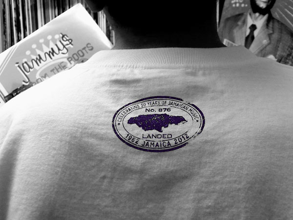 ジャマイカ独立50周年に合わせて、その現在までの歴史を共に歩んできたジャマイカ音楽をテーマとしたTシャツ・シリーズです。SKA、ROCK STEADY、ROOTS ROCK、LOVERS ROCK、DUB、DANCEHALLと、ジャマイカン・ミュージックの歴史の中で誕生したカルチャーをそのままストレートにデザイン。それを伝えてきたアナログ・レコードの盤面をイメージした質感の「VYNILブラック/黒」でプリント。また裏面には共通ロゴとして、以前のジャマイカ入国スタンプをイメージした「JAMAIKA LANDED STAMP」ロゴを濃青プリント。