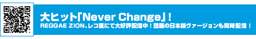 CDのリリースに先駆け6月より先行配信された「Never Change」「Never Change(日本語ヴァージョン!!)」 が、REGGAE ZION、レコ直にて絶好調!!!!! 大好評配信中!!