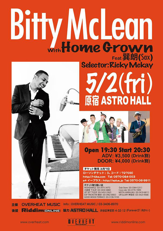 大名盤『ON THE BOND STREET』で知られるUKレゲエを代表する名シンガー、BITTY McLEANが5年振りに来日!